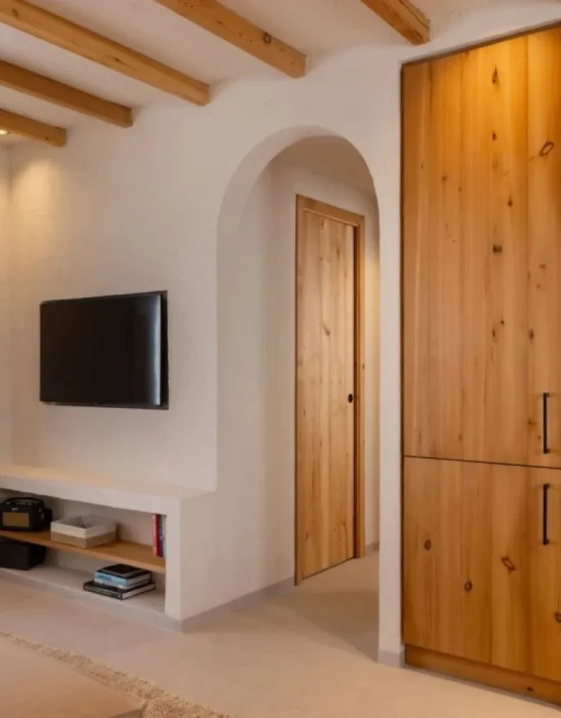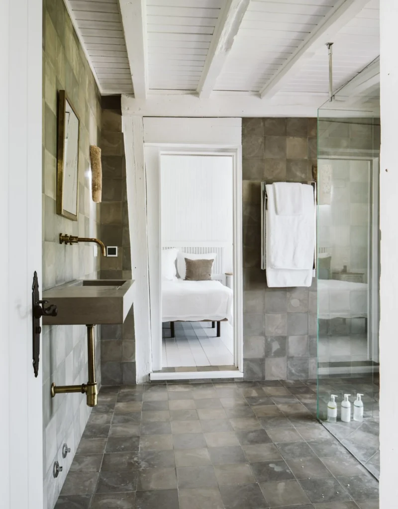 Las habitaciones son de lujo, con suelos con suelos de piedra negra, el mobiliario es moderno y elegante, con tonos neutros y tejidos suaves, y algunas cuentan con terraza privada.
